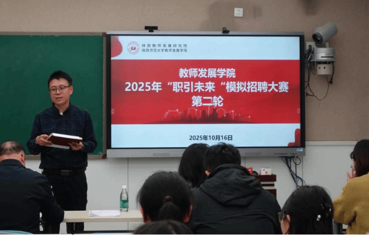 为深入贯彻落实党中央、国务院关于高校毕业生就业工作的决策部署,切实提升学生就业竞争力,针对性增强学生教学能力、应变能力和职业规划能力,教师发展学院于2025年10月16日晚6点30分在教学一楼举办“职引未来”模拟招聘大赛第二轮比赛。