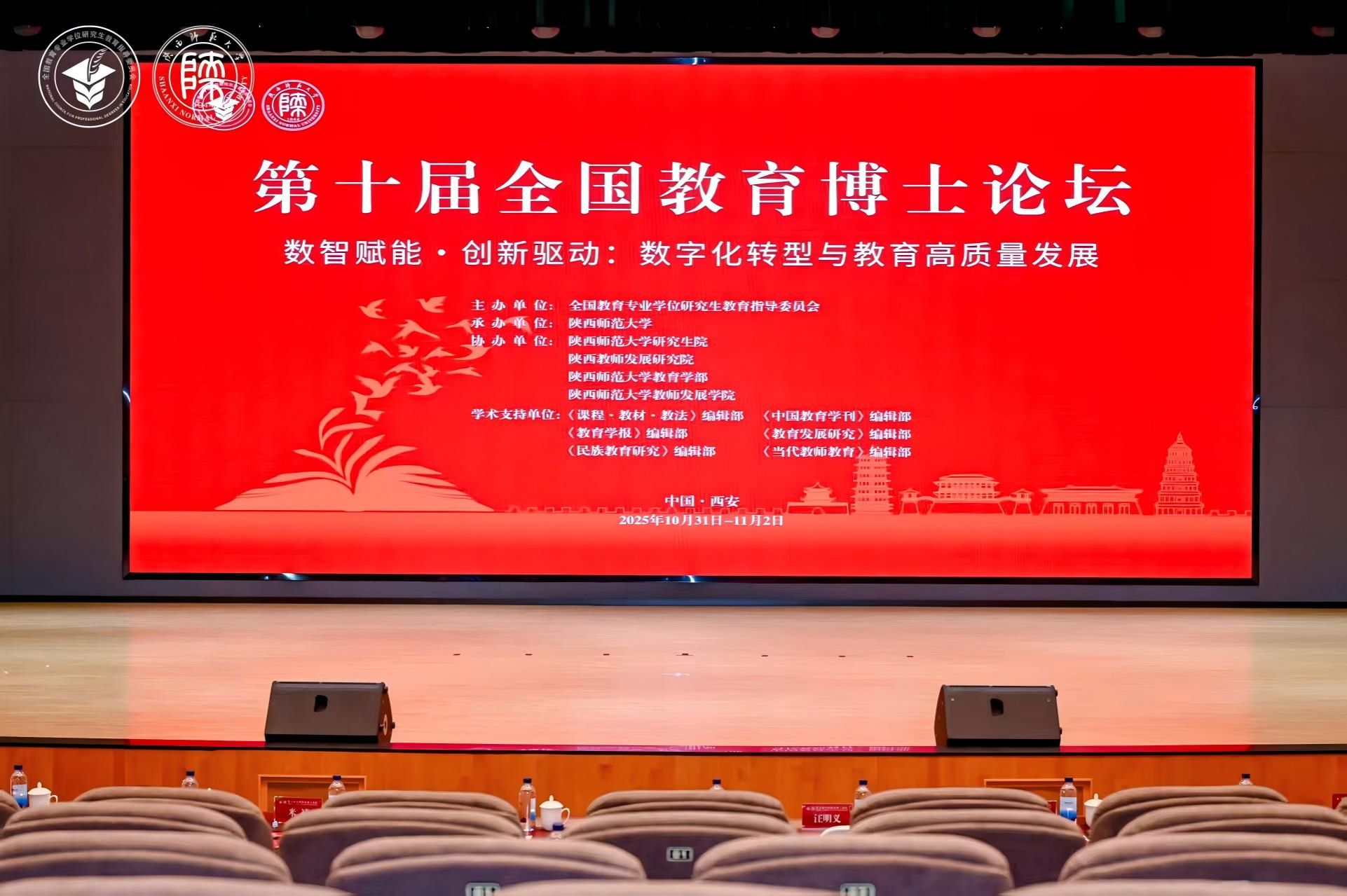 10月31日至11月2日,第十届全国教育博士论坛在我校长安校区举行,聚焦“数智赋能·创新驱动:数字化转型与教育高质量发展”主题,共话教育博士高质量发展。